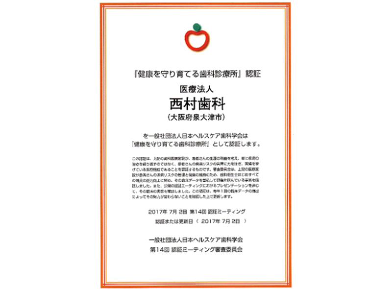 当院は、日本ヘルスケア歯科学会の認証診療所として「健康を守り・育てる歯科医療」を実践しています。ヘルスケア型診療とは、悪くなってから治療するのではなく、口腔内の情報を丁寧に記録・管理し、患者さま一人ひとりのリスクに合わせて予防とコントロールを行う診療スタイルです。病因論の理解、記録と検証、メインテナンス、チーム医療という4つの柱を軸に、疾病を未然に防ぎ、すでにある問題も無理なくコントロールしていきます。恐怖心から歯科受診をためらう方でも、定期検診や生活習慣の見直しを通じて「悪くなる前に防ぐ」ことができれば、安心して通院を続けていただけます。