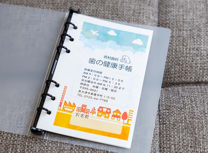 当院では、患者さま一人ひとりがご自身の歯とお口の健康を分かりやすく管理できるよう、「歯の健康手帳」をお渡ししています。