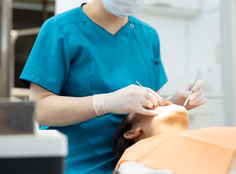 プラークが石灰化してできた歯石は、ブラッシングでは除去することができません。そこで、歯科衛生士が専用の器具を使って歯石を取り除く処置がスケーリングです。歯石は細菌のすみかになるため、定期的な除去が口腔内の健康維持に欠かせません。当院では、患者さまの口腔内の状態に合わせて、適切な間隔でのスケーリングをおすすめしています。