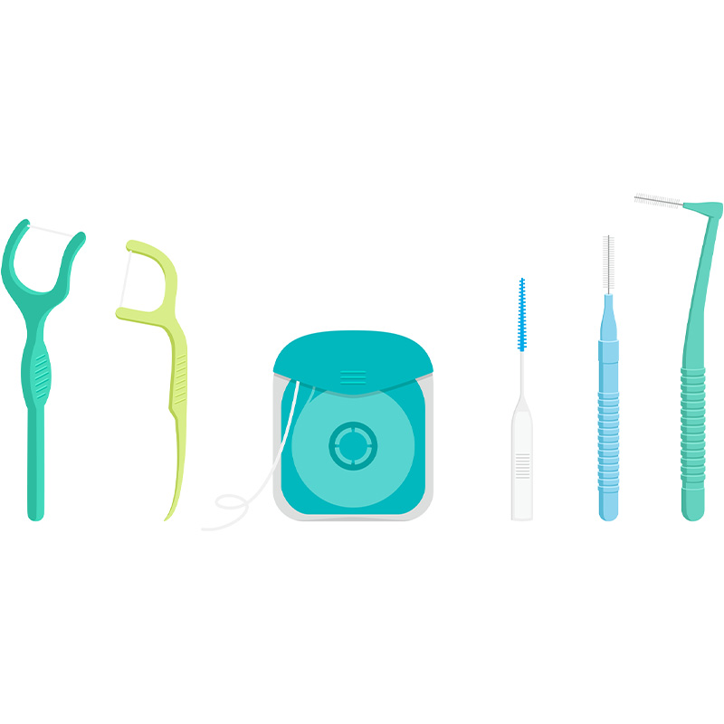 歯と歯の間からのむし歯は気づきにくく、痛みやしみなど症状が出てからの治療になることが多いです。デンタルフロスや歯間ブラシの使用はよごれをとることだけでなく、むし歯の早期発見にもつながります。1日1回でも使いましょう。